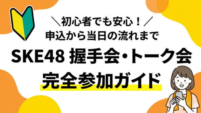 SKE48が気になり始めた初心者の方向けの人気メンバー紹介、劇場公演の入り方、握手会の参加方法などを解説しています。