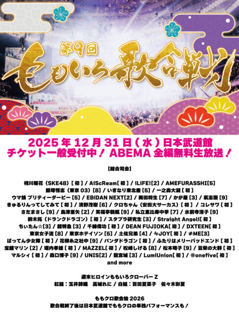 SKE48の相川暖花が、2025年12月31日(水)に日本武道館で開催される「第9回 ももいろ歌合戦」に出場することが決定しました。