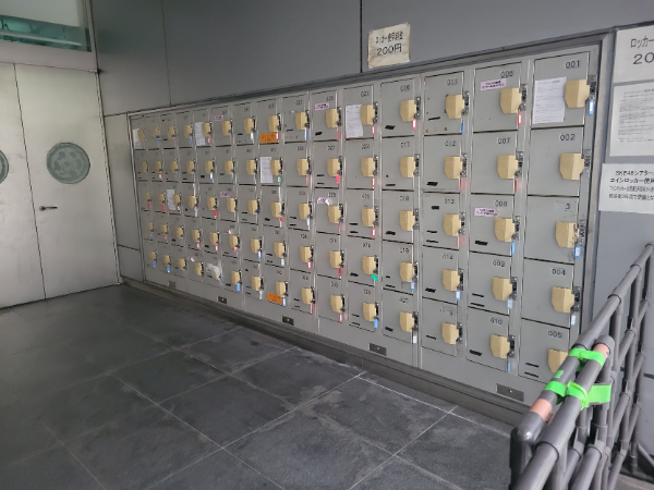 ロッカーは普通のバッグなどは大丈夫ですが、キャリーバッグなど大きな荷物は入りません。受付でスタッフに申し出て預けてください(料金は同じ200円)。